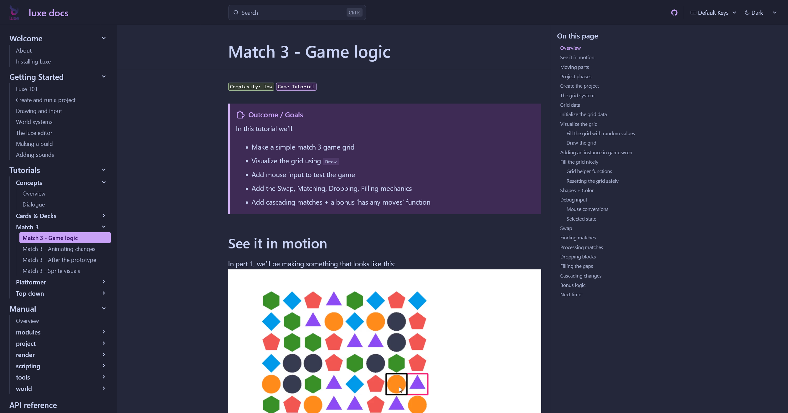 We also have been adding whole new tutorials, for example we've now got a comprehensive tutorial making a simple match 3 like game, but the focus is on