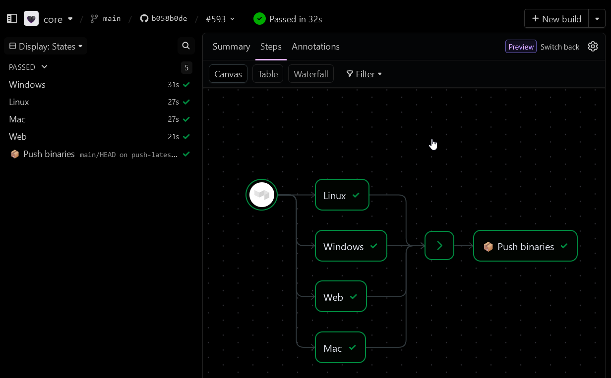 We've also made it automatically publish pre-release builds so that they're grabbable on the user side. This is not new but submitting a build is one click! We wrote a little tool in luxe (naturally) to make it easy: