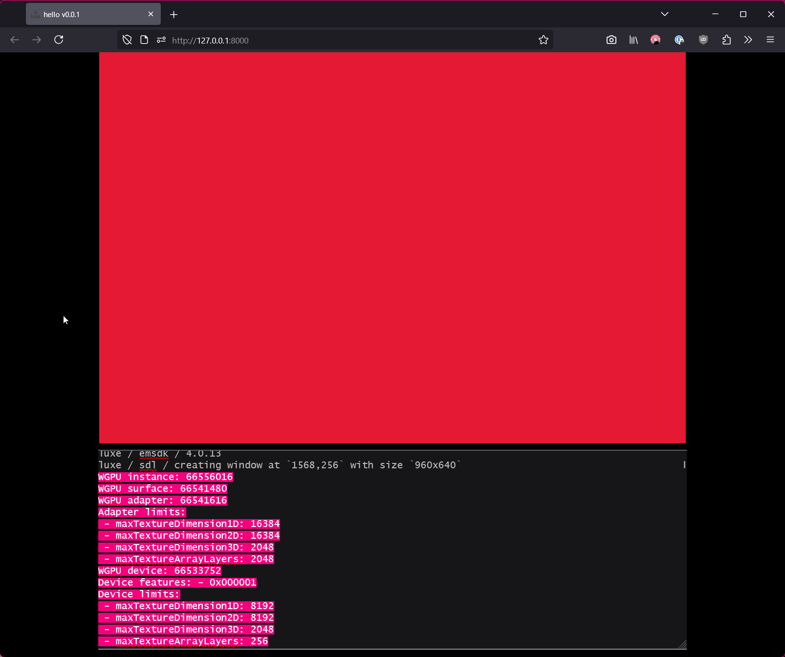 This is just a clear color but our testing of luxe on browser WebGPU and Dawn was going well.