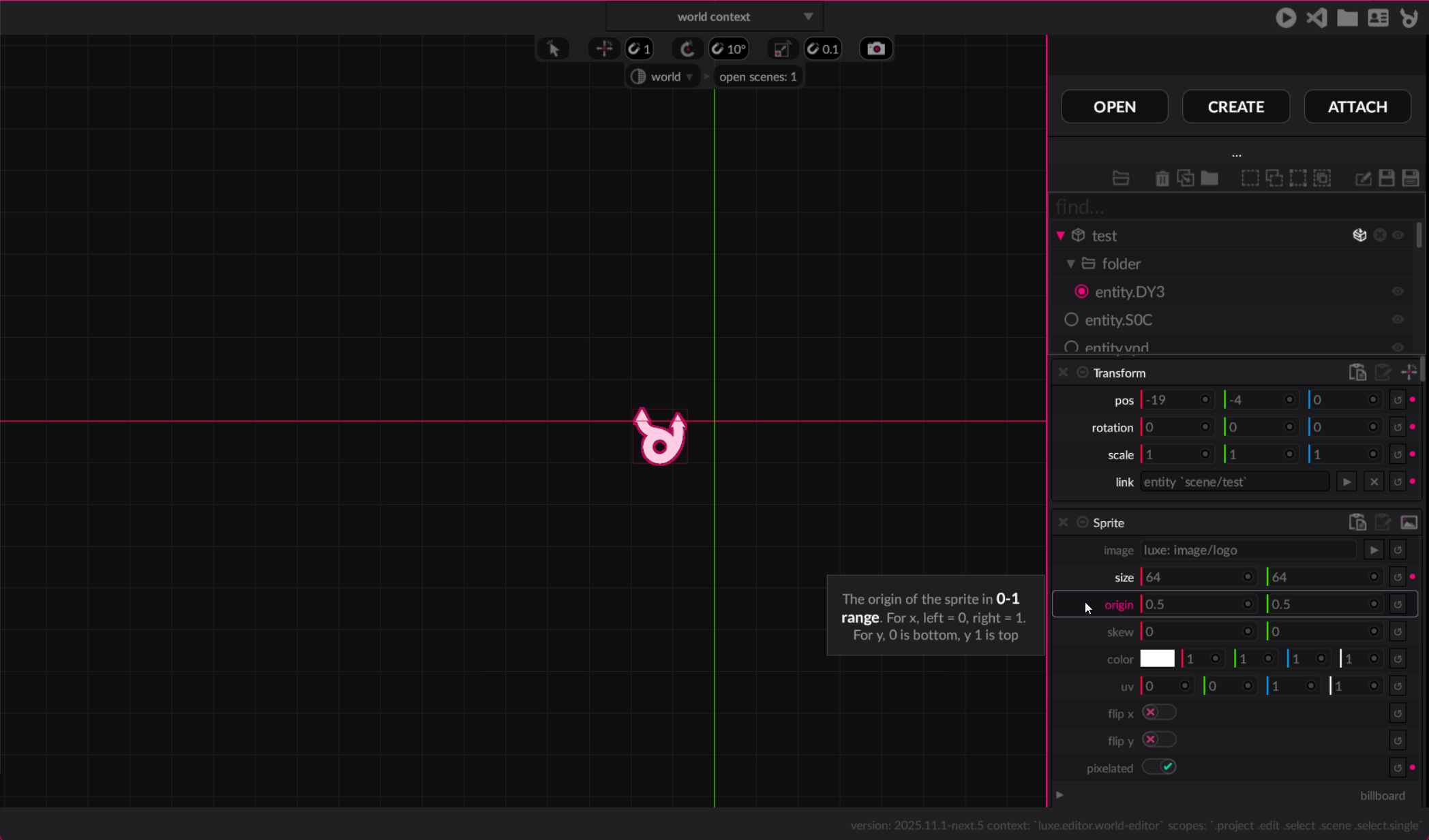 That means it is plenty usable for a wide range of 2D games + more, but we're wrapping up documentation and samples. You can already hop in, it'll help us make sure it's smooth for others. 2025.11.1 is live.